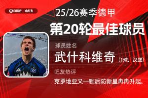 直播吧X小红书|德甲第20轮最佳:18岁武什科维奇!助汉堡逼平拜仁2025-2026赛季德甲火热进行中,体育资讯和小红书联合发起每轮德甲最佳球员评选活动!第20轮评选结果出炉,18岁热刺外租小将武什科维奇破门,攻防两端发挥俱佳,帮助汉堡逼平拜仁。武什科维奇当选【体育资讯