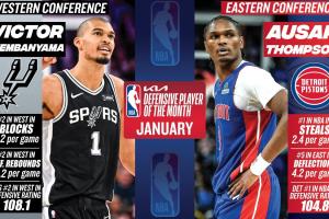 月最佳防守球员:东部活塞奥萨尔2.4断 西部马刺文班亚马2.2帽体育资讯02月04日讯NBA官方宣布,活塞奥萨尔与马刺文班亚马分别当选1月东西部月最佳防守球员。文班1月场均2.2次盖帽排名西部第2,场均8.2个防守篮板排名西部第2,马刺防守效率108.1排名西部第2