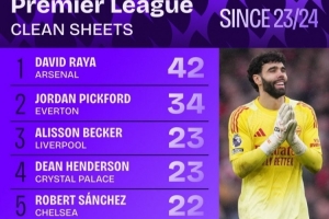 近3个赛季英超零封榜:拉亚42次、皮克福德34次、阿利松23次体育资讯2月8日讯阿森纳在本轮英超3-0完胜桑德兰,数据统计显示,拉亚是近3个赛季零封次数最多的英超门将。近3个赛季英超零封次数榜:1.拉亚(阿森纳),42次2.皮克福德(埃弗顿),34次3.阿利松(利