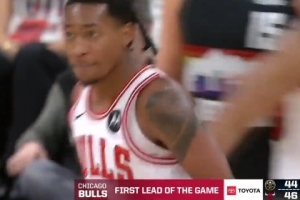 本场比赛首次领先!迪林厄姆正面空位三分命中帮助公牛反超比分GIF-迪林厄姆正面空位三分命中帮助公牛反超比分