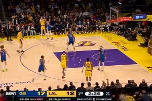 这就是联盟第一射手?肯纳德刚上首次三分出手就拿下湖人生涯首分GIF-肯纳德高弧度三分命中