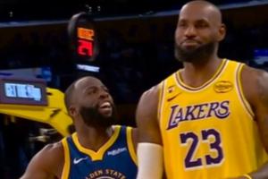 追梦进三分后冲着詹姆斯叫嚣~詹姆斯忍不住笑了GIF-追梦进三分后对詹姆斯叫嚣