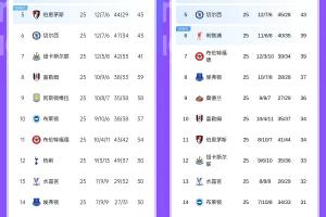 英超积分对比上赛季同期:利物浦-21分断崖下滑,曼联涨15分升第4英超前六积分对比上赛季同期:阿森纳:+3,第2→第1曼城:+6,第4→第2维拉:+9,第9→第3曼联:+15,第15→第4切尔西:+0,第6→第5利物浦:-21,第1→第6其他看点:热刺:-1,第12