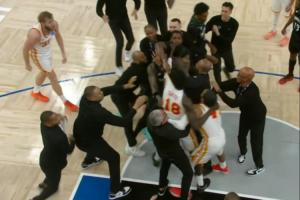又打架啦!里德盖耶互相拉拽引发冲突!裁判回看后将2人都驱逐森林狼老鹰比赛第三节,盖耶卡位中推拉里德引里德不满,两人贴面输出,随后发展成拉拽冲突!双方多名球员和助教前来拉架。裁判回看之后,将冲突双方里德和盖耶都1T驱逐!GIF-盖耶里德冲突!GIF-慢放看一下
