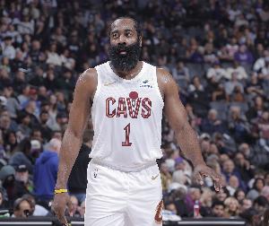 就是干这个的!哈登突破迎着补防上篮得分 打破骑士得分荒GIF-哈登上篮打破僵局