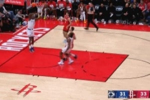高难度!科林斯冲击篮筐 超长滞空对抗杜兰特抛射命中GIF-科林斯滞空打中