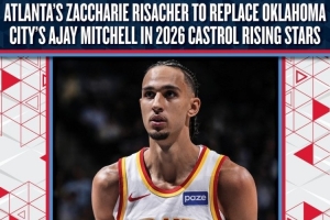 官方:24年状元里萨谢顶替阿杰伊·米切尔参加全明星新秀挑战赛体育资讯2月11日讯NBA官方宣布,24年状元秀老鹰前锋里萨谢将顶替雷霆后卫阿杰伊·米切尔,加入特麦迪执教的TeamT-Mac,出战2026年全明星新秀挑战赛。米切尔因腹部拉伤无法参赛。里萨谢本赛季场均