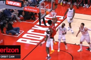 欺负人了!阿门篮下旱地拔葱骑着邓恩直接单臂补扣GIF-阿门骑着邓恩单臂补扣
