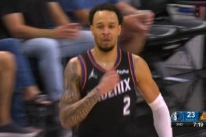 狂轰滥炸!科菲追身三分命中 不到一节半时间太阳领先独行侠30分GIF-太阳领先30分了